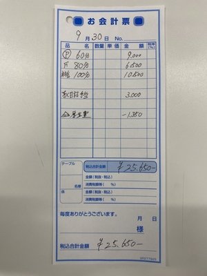 昨日10/1(水)に出勤してくれた、学生(20歳)の給与明細をご紹介します。