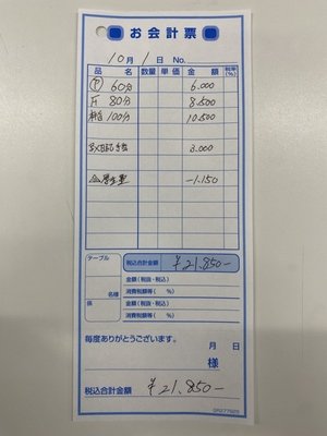 昨日出勤してくれた学生さん(20歳)の給与明細をご紹介します。