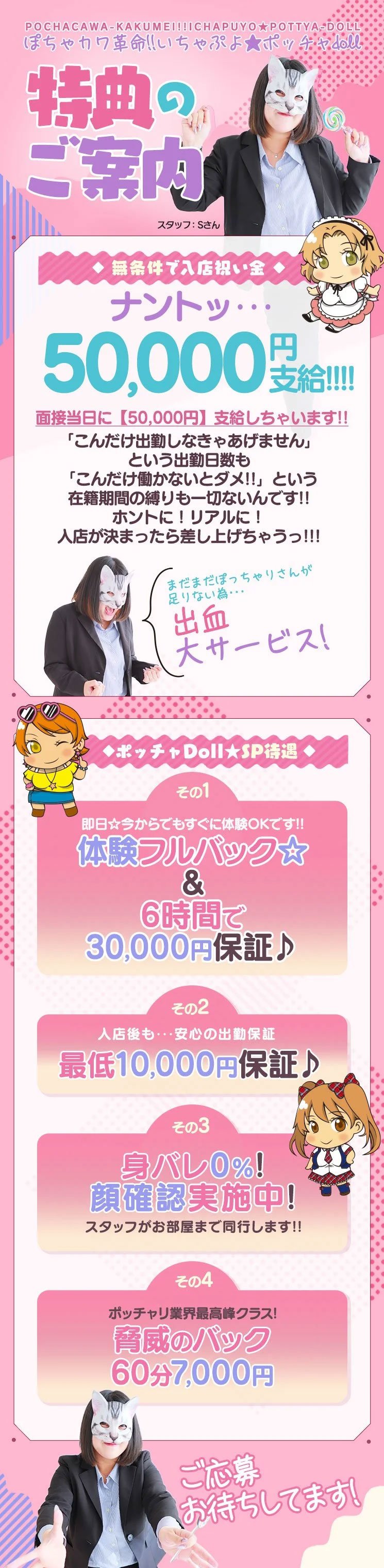 誰でも【入店祝い金5万円】もらえちゃう☆.。.:*・ ・即日1万円支給(誰でも) ・20本ごとに10,000円支給(4回支給!80本で4万円) 。:+* ゚ ゜゚ *+:。:+* ゚ ゜゚ *+:。:+* ゚ ゜゚ *+:。 【バック金額】 ●コースバック ・60分 … 7,000円 ・90分 … 10,000円[1番人気のコース] ・120分 … 12,000円 ※指名料金・オプション料金は全額バック! ●指名料 ・ネット指名 … 1,000円 ・本指名 … 2,000円 【POINT】 ①お給料完全日払い!💰 ②ノルマ・罰金などは一切ありません!🙅♀️ ③写メ日記手当あり!📝 ------------------------------------------------ 【キャストさんのお給料例を紹介】 🔽未経験ちゃんの例 A子ちゃん(15:00~19:00の4時間勤務) ・90分×2本 →2名接客で「20,000円」 ⇒週2~3日、月9日出勤で【月収:180,000円💴】 ୨୧┈┈┈┈┈┈┈┈┈┈┈┈┈┈┈୨୧ 🔽専業の女の子の例 B子ちゃん(12:00~20:00の8時間勤務) ・60分×1本 ・90分×1本 ・120分×2本 →4名接客で「41,000円」 ⇒週4~5日、月16日出勤で【月収:656,000円💴】 |