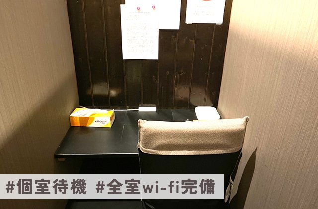 A | 当店の待機所は個室待機になります!その為プライベート空間も保たれておりますし、なるべく顔を合わせたくない・・と言う方でもしっかり気が休まる待機所になっております♪ 待機場所では皆さん、写メ日記を作成していたり、ゆっくりおくつろぎ頂いているキャストさんが多いです(^O^) |