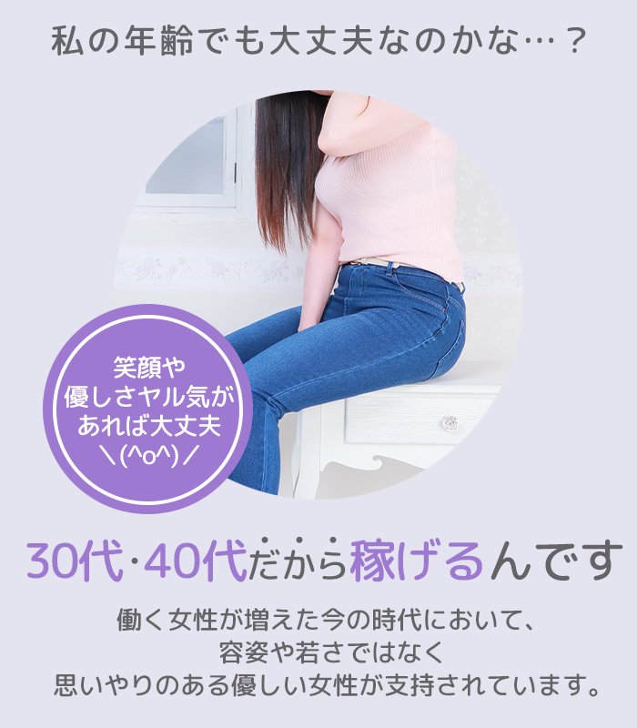【本●強要を一切許さないお店です】30代~50代の女性が年齢を偽る事をせず、そのままの貴女で希望の金額が稼げます!!