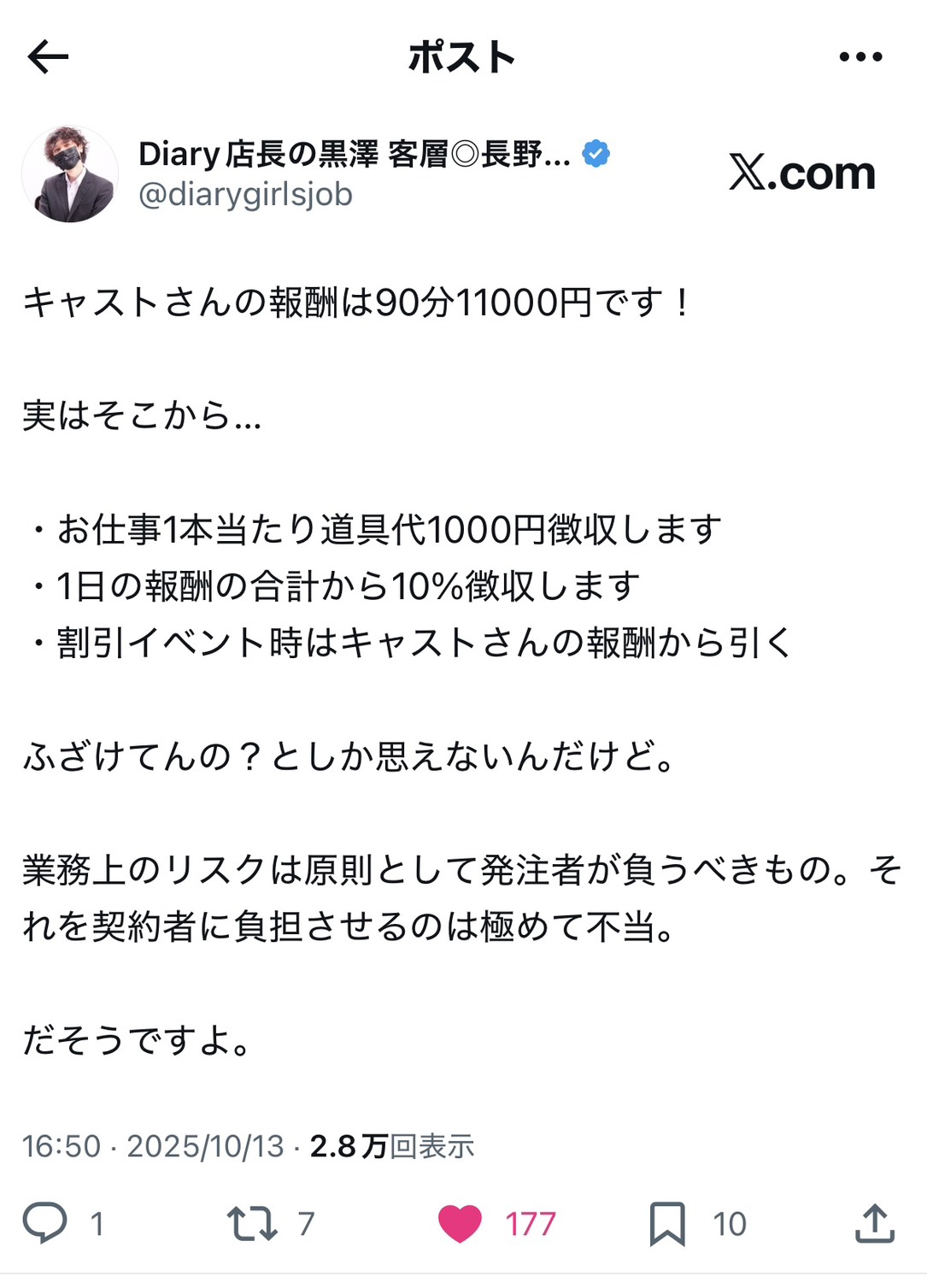 特に「割引イベント時の割引を分をキャストさんに補填させる」