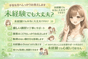 当店で働いている女性の多くは、 最初は未経験からのスタートです。