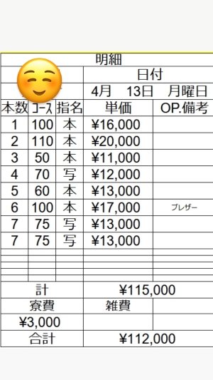 4月12日 出稼ぎSさんの明細公開