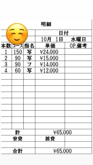 10月1日 在籍Mさんの明細公開