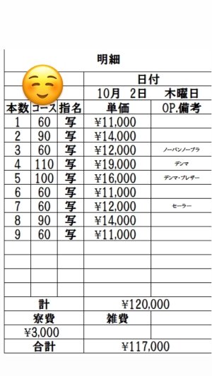 10月2日 新人Sさんの明細公開