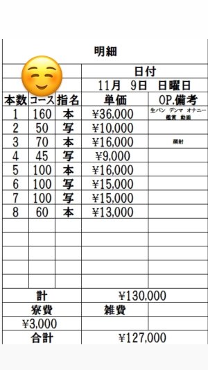 11月9日 出稼ぎNさんの明細公開
