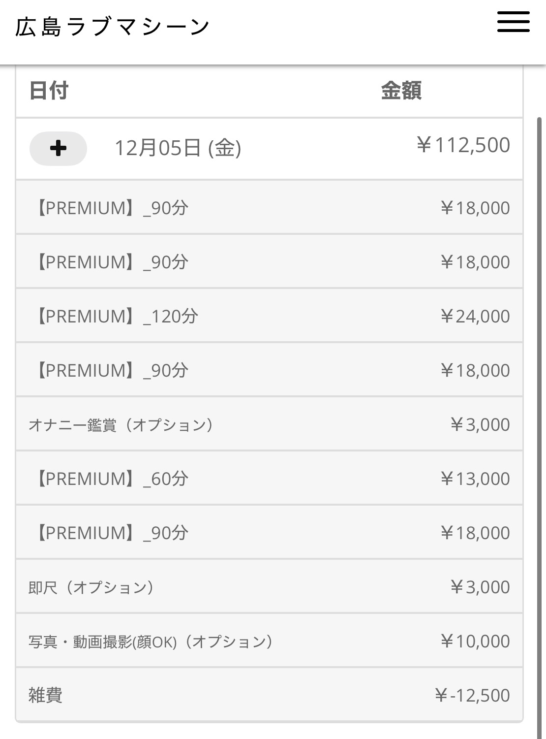 たとえばこの子は、【広島ラブマシーン】で働いた**12月5日(金)**の1日で