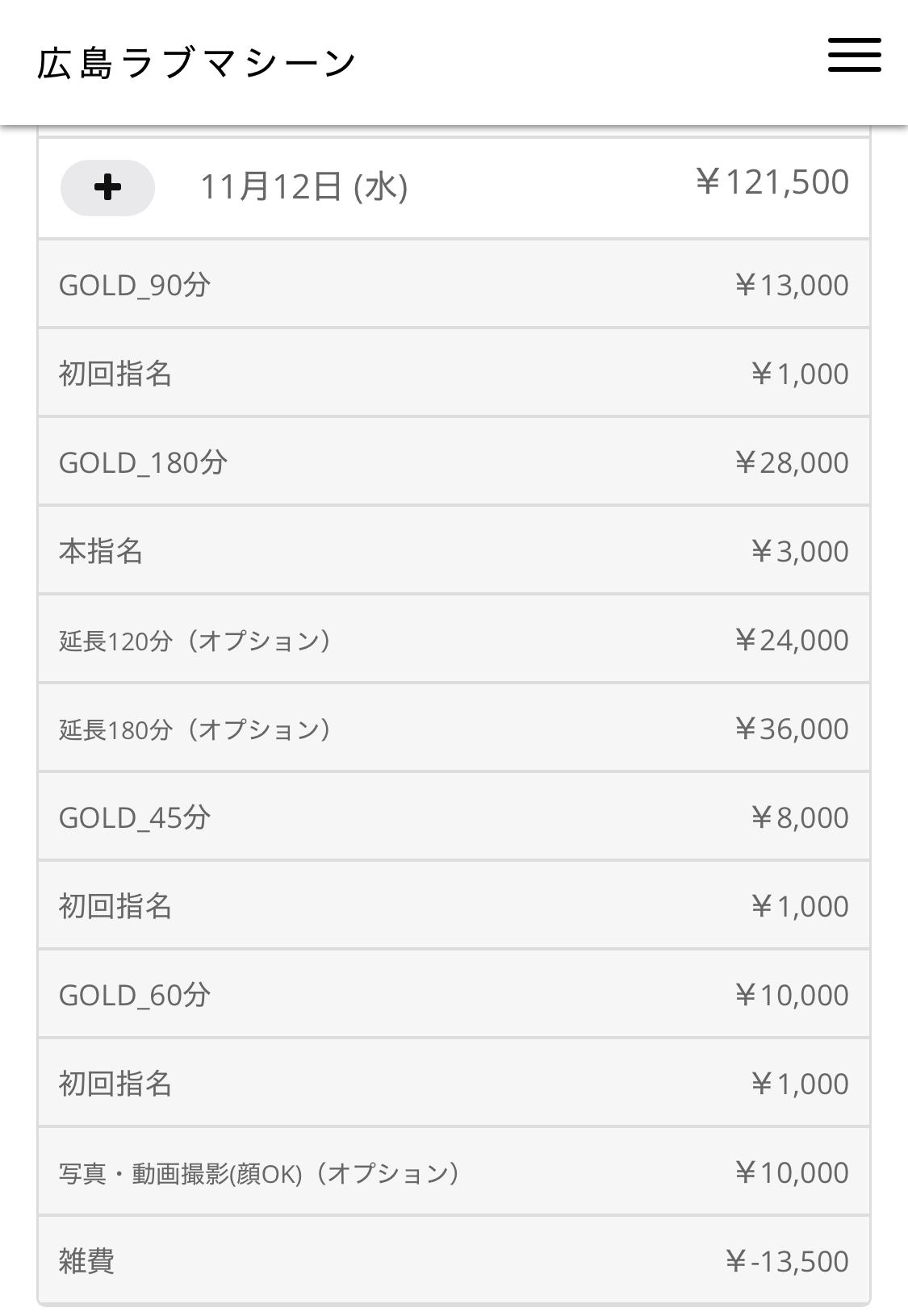 | 店舗名 | ラブマシーン広島 [ラブマシーングループ] | |