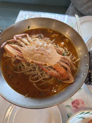 カニのパスタがランチでお得だったのでオーダーしてみました