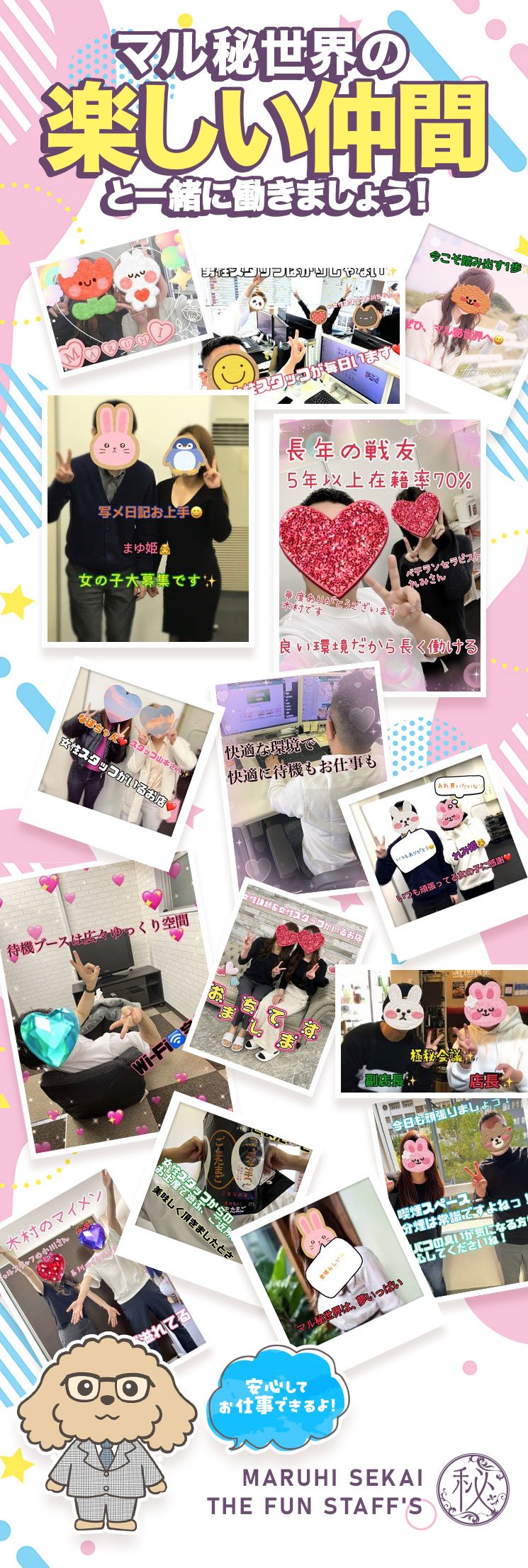 女 の 子 大 募 集 マル秘世界副店長の藤田です!! 最近の新人さんから よく...