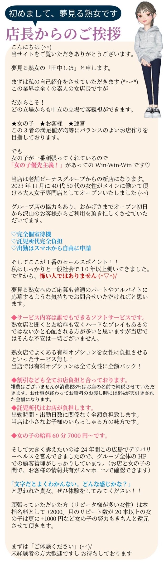 お問い合わせの際は、はじめに「ガールズヘブンを見ました」と言うとスムーズです。