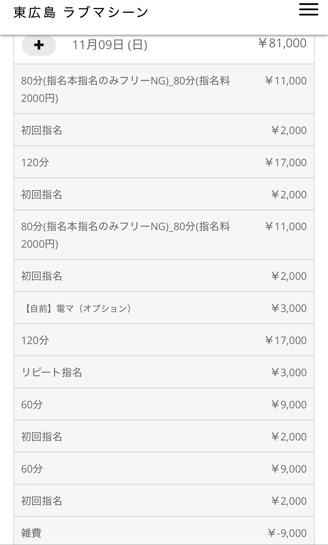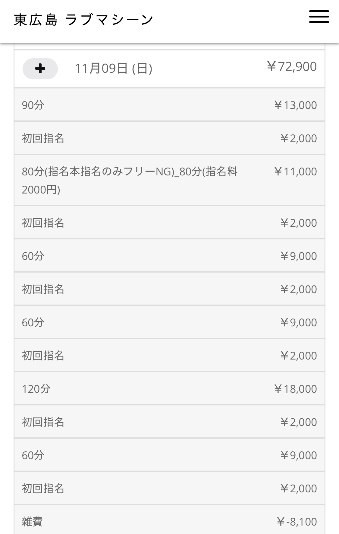 2025年11月9日、実際に働いた女の子の明細を2件ご紹介します。