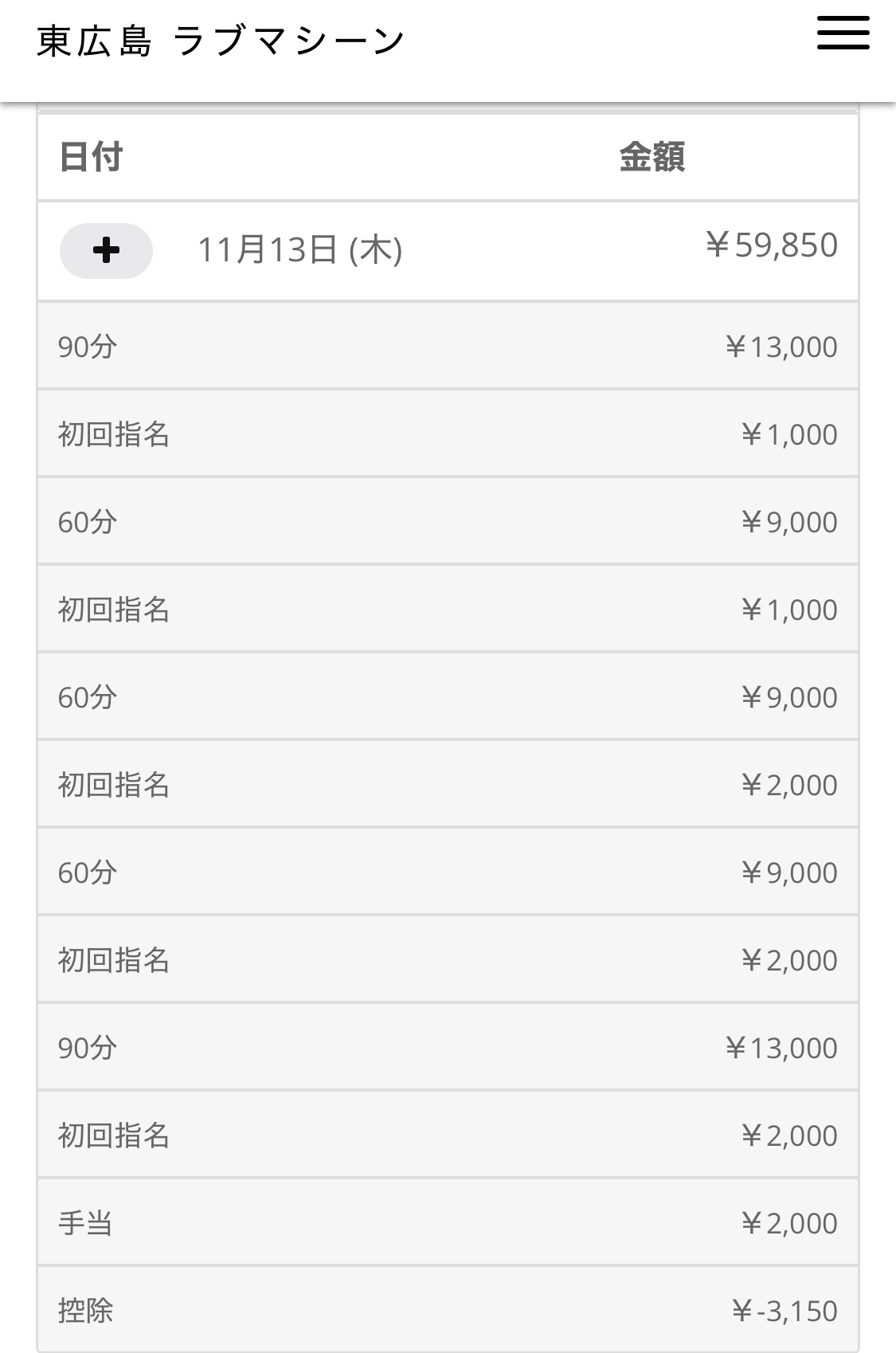 本日紹介するのは、業界未経験の子が初出勤で**¥59,850**稼いだ“リアルな明細”。