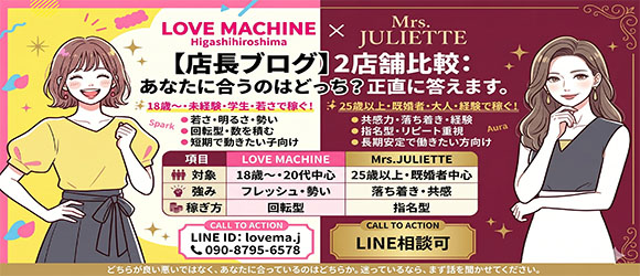 同じグループの2店舗ですが、求める人・雰囲気・稼ぎ方は違います。