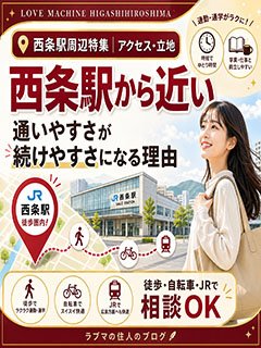 西条駅周辺なら徒歩・自転車でも相談可能です。車なしの方もまず聞いてください。