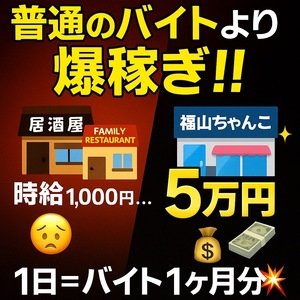 「ファミレスの1ヶ月分を、福山ちゃんこで1日で稼げた‼️」