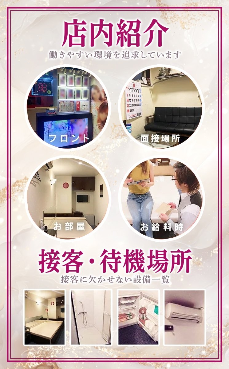 ソフトサービスで即サービスやシャワーサービスがなく未経験でもすぐに始められるのが当店の特徴です。