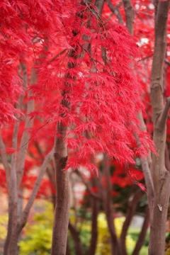 イチョウの葉っぱがびっくりするくらい真っ赤で、まるで誰かが彩度を上げすぎた写真みたい。