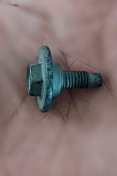 車の近くに、ポツンとネジが一本。