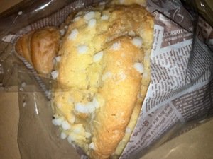 クロワッサンにメロンパンのサクサク部分が乗った背徳的なパン・・🍞