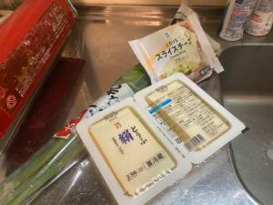 絹ごし豆腐、小ネギ、とろけるチーズ