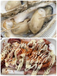 焼き牡蠣、いか焼き、ビールをいただきました🙏