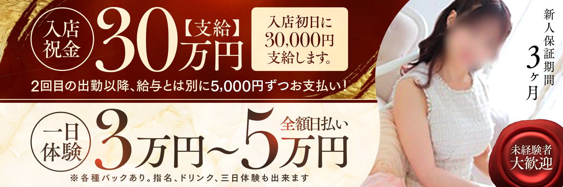 | A | 1日体験してくださったキャストさんへ30,000円~50,000円の保証をお支払いさせて頂いております。 新人保証は日給40,000円~50,000円で保証期間は2か月となっております。 経験者、未経験者問わずに保証をご用意しております。 |