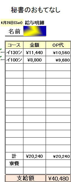 【新人の日給例】※入店1ヵ月未満