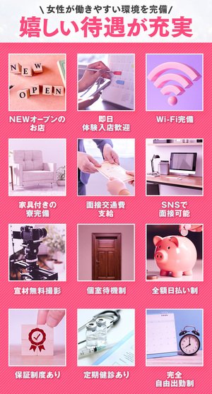 只今キャストさん大募集中!難しいことがないので【未経験】からでもすぐ活躍できるようにプロデュース致します♪ 60分10,000円~+αのお給料体系で収入面もご安心頂けると思います。質問だけでも大歓迎!ご応募お待ちしております。