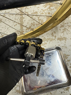 まずは、チェーンが汚れないように慎重にトレーへ☝️