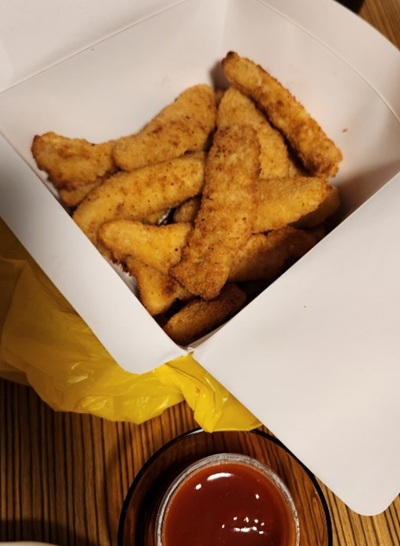 いつものロティサリーチキンを止めて、今回はフードコートでチキンステック(980円)