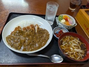 カツカレーとお蕎麦とサラダとついて700円くらいでした!
