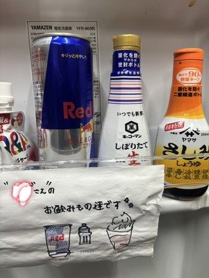 冷蔵庫を開けると許可もしてないのに張り紙が