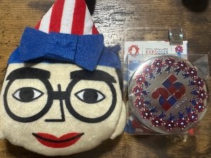 大阪のくいだおれ太郎と万博の品物を頂いたのじゃ!