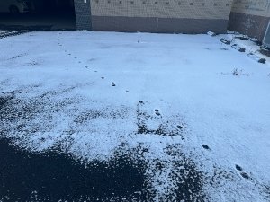 送迎をしていると、駐車場に可愛い訪問者の足跡が!!