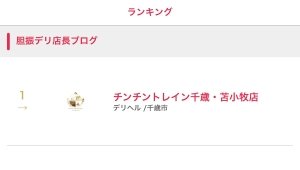 チントレが胆振店長ブログで1位になりました!