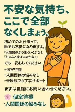 個室待機でプライバシーも守られ、人間関係のストレスもなし✨