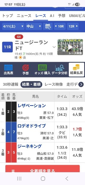 ロデオが1着に来る方に