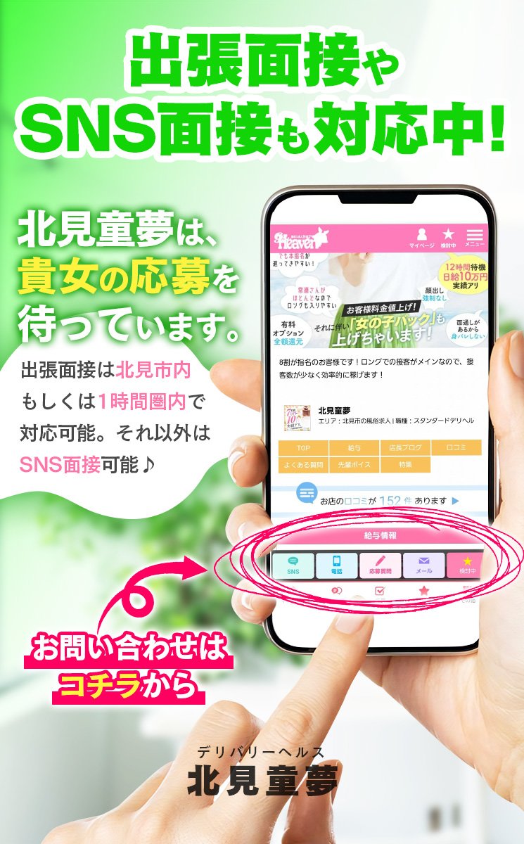 | A | 北見で利用される方の年齢層は30代~50代ぐらいのお客様が多いかと思います。 その中でも当店のお客様は比較的 裕福な方が多い印象です。その為ロングコースや指名でのオーダーが多く入ります。本指名も返ってきやすいので収入UPにはもってこいです! |