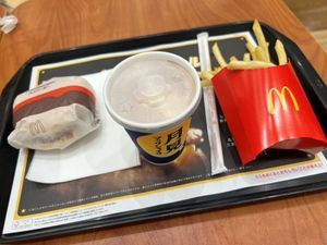 マックシェイクが飲みたくなったので、ついでにセットにしてハンバーガーとポテトも食べました!