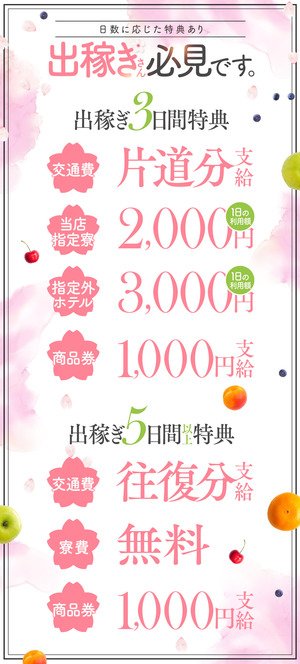 当店も人気店の仲間入りをして、人数の足りなさに大変困っており多々、オーダーをお断りすることがあるため”緊急大募集”です!!『女性を第一』に考え最も稼ぎやすい環境を生み出す努力を惜しみません。【働きやすい環境】と【安定した高収入】をお約束します☆やさしい&たのしいスタッフしかいないのでお気軽にどんなことでも相談してくださいね♪