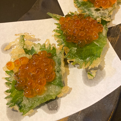 大葉の天ぷらにイクラが乗っかってた。優勝。