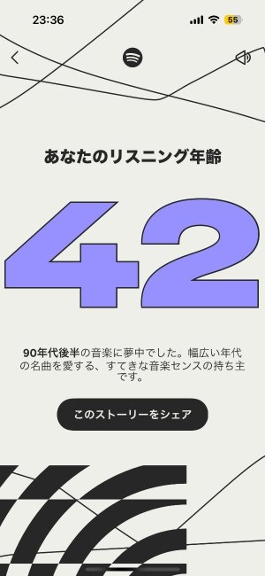 90年代と00年代の曲をよく聞いているからかリスニング年齢が自分の年齢のほぼダブルスコアになってました。
