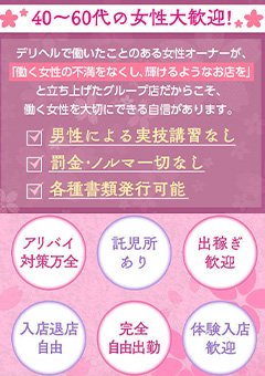 人妻、バツイチ、独身、他店で断られた方、未経験者、経験者と大歓迎!!