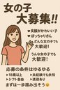 18歳〜40歳ぐらいまで! 未経験者大歓迎! 経験問わず大歓迎! 1日体験入店随時行っています! ※18歳未満(高校生を含む)の応募はお断りします。 |