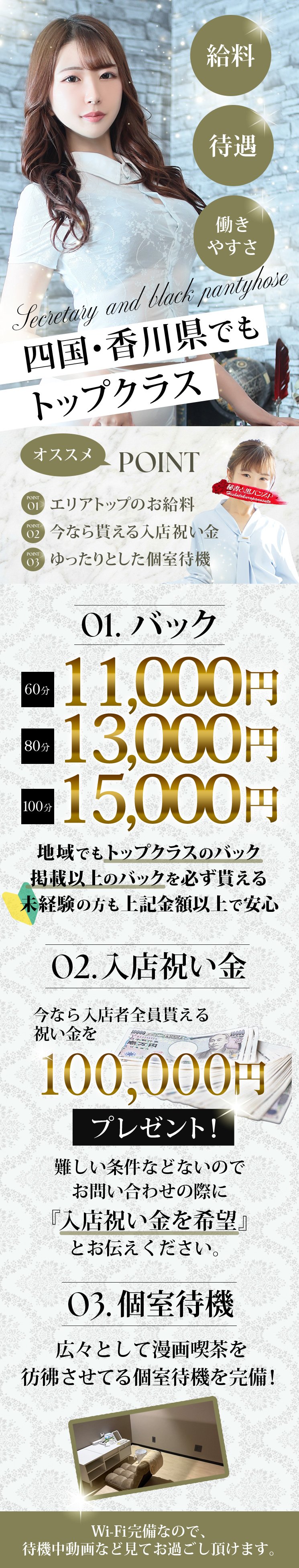 香川トップクラスの広告量のお店だから待機が少なく効率良く高収入を目指せる!