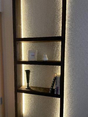 昨手作りDIY。本棚完全です。JOYで木を買ってきてノコギリ🪚できって釘を打って裏にLED付けて完成です。3時間くらいでできました。右と左の長さがちがってた時は無理かと思いました😣今日も宜しくお願い致します😊