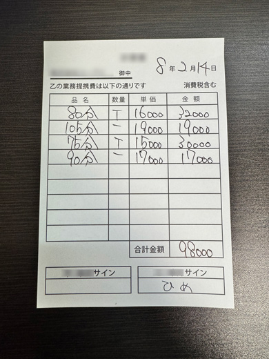 R8.2.14(土)初出勤の女の子(ひめさん)のお給料です。