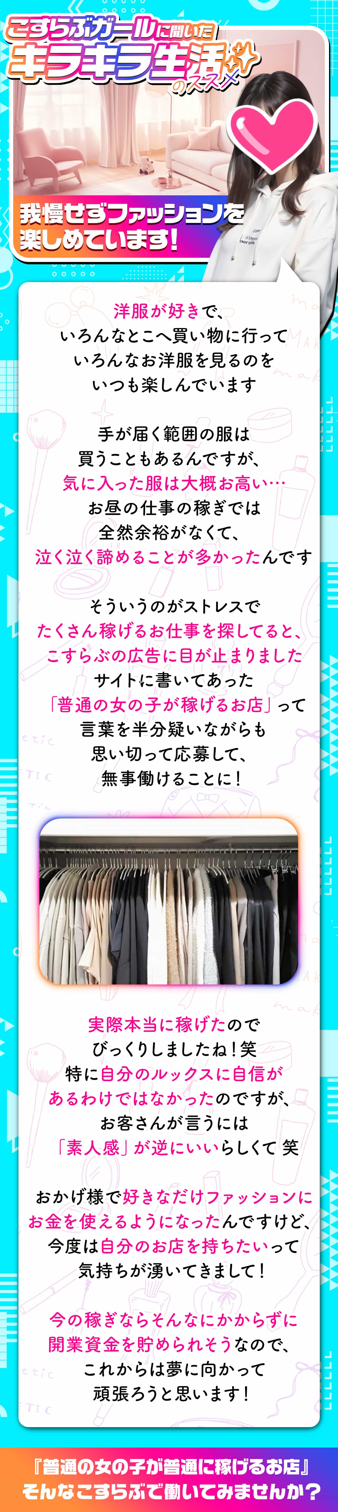 『本当の話をします。』出稼ぎリピ率ほぼ100%なのです^^お給料・待機環境・スタッフ信用度、すべて高水準だからこそ何度も行きたくなるお店なのです♪貴女を全力でサポートいたしますので、全力で稼いでお帰りください♪出稼ぎ先をお探しで困っている女の子は、当店『こすらぶ鹿児島店』へぜひ!お越しください♪♪♪